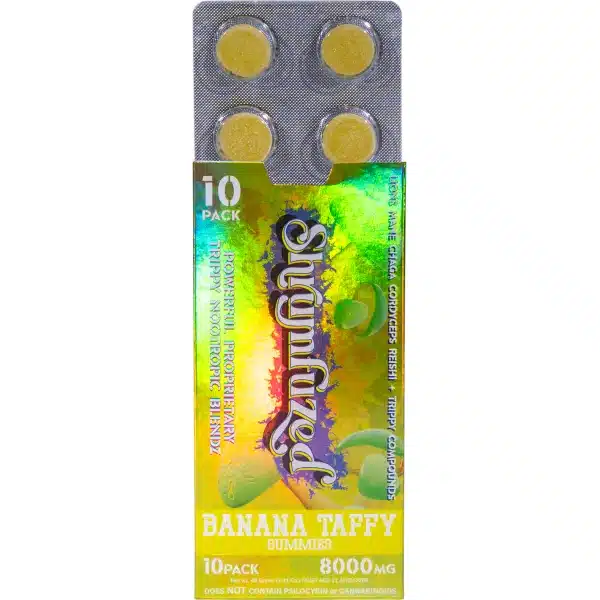 Unlock a vibrant, enhanced state of mind with Shrumfuzed Nootropic Mushroom Gummies – Banana Taffy. These delicious gummies are infused with a powerful nootropic mushroom blend designed to promote mental clarity, creative energy, and deep relaxation — all while tasting like sweet, nostalgic banana taffy! 🍬✨